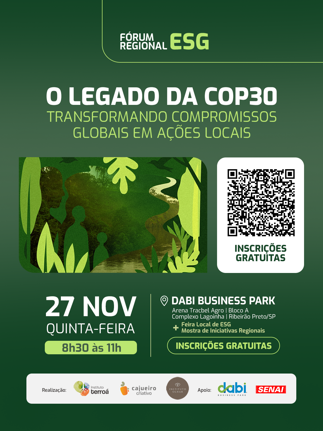 Ribeirão Preto irá sediar o Fórum ESG: O Legado da COP30, um encontro voltado à reflexão e ao diálogo sobre como aplicar, em nosso território, os aprendizados, acordos e experiências construídos durante a conferência mundial.